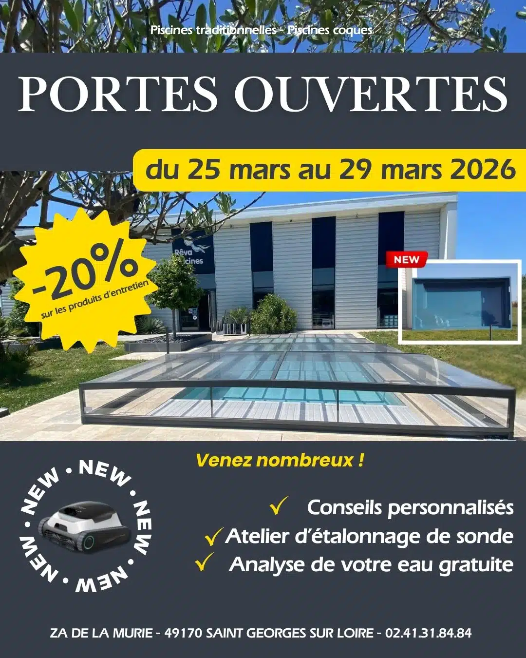 Une semaine exceptionnelle chez Réva Piscines à Saint-Georges-sur-Loire Nous avons le plaisir de vous inviter à nos Portes Ouvertes qui se tiendront du 25 au